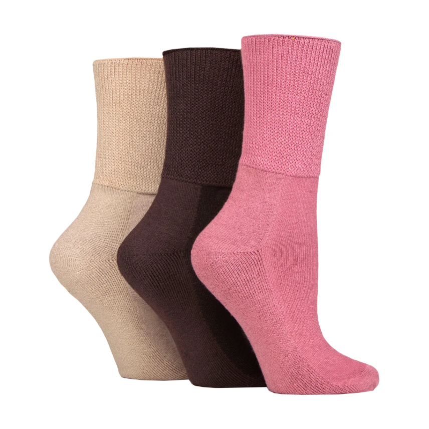3 Pairs Ladies Cushion Foot Bamboo Diabetic Socks - Pink Mix
