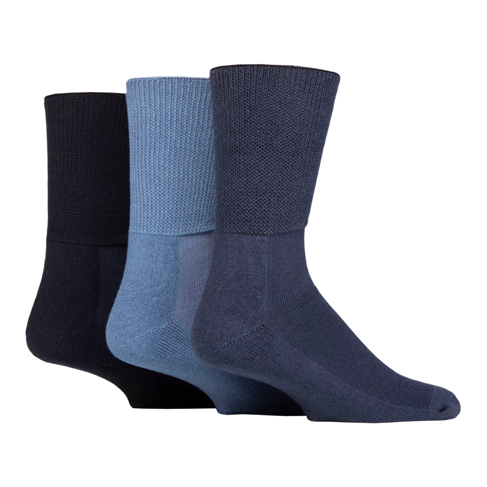 3 Pairs Mens Cushion Foot Bamboo Diabetic Socks - Denim Mix