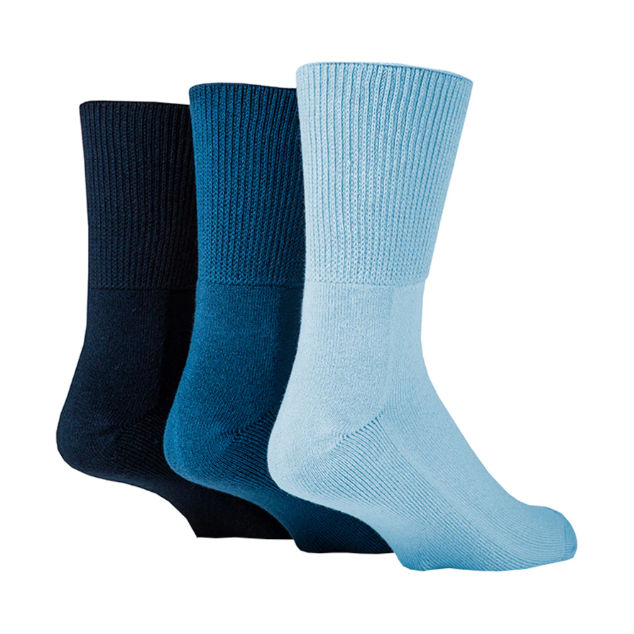3 Pairs Mens Cushion Foot Bamboo Diabetic Socks - Blue Mix