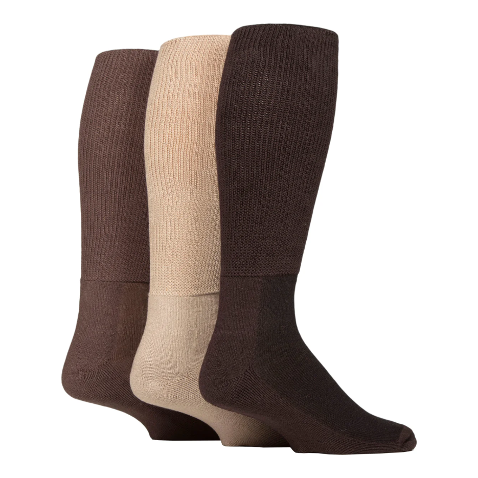 3 Pairs Mens Knee Length Bamboo Diabetic Socks - Coffee Bean